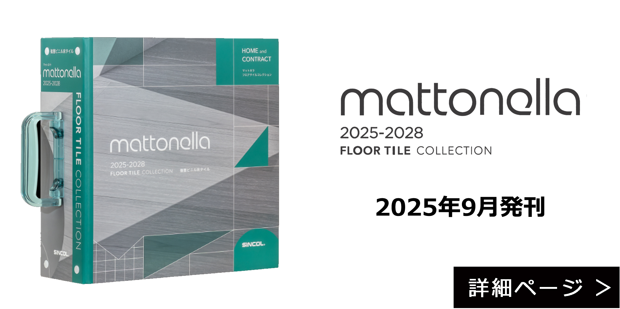 【用途】 -------------------------------------- 店舗から住宅まで、多彩なニーズに応える複層ビニル床タイル「マットネラ」(オリジナル商品) 総収録点数:292点 |